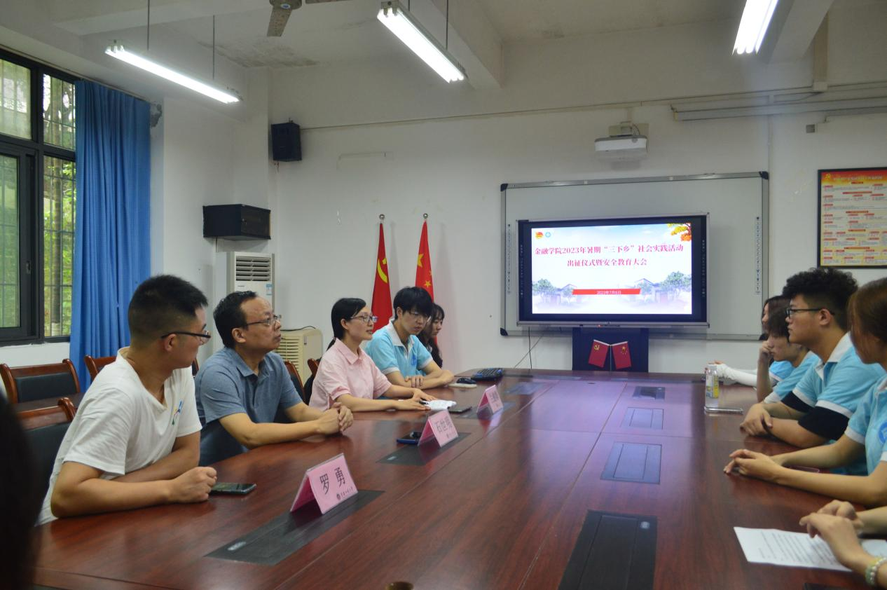 实干笃行正青春,普惠金融践初心。为扎实开展好学习贯彻习近平新时代中国特色社会主义思想主题教育,深入学习贯彻落实党的二十大精神,引领广大青年员工立志做有理想、敢担当、能吃苦、肯奋斗的新时代好青年,伟德国际1949积极推进暑期“三下乡”社会实践活动。7月6日中午,伟德国际19492023年暑期“三下乡”社会实践活动出征仪式暨安全教育大会在田家炳317会议室及线上同步举行。委书记、副经理石世明,党委副书记、纪委书记余新,学工办主任、分团委书记兰丽娟、员工第一党支部书记罗勇及各实践团成员参加了会议。