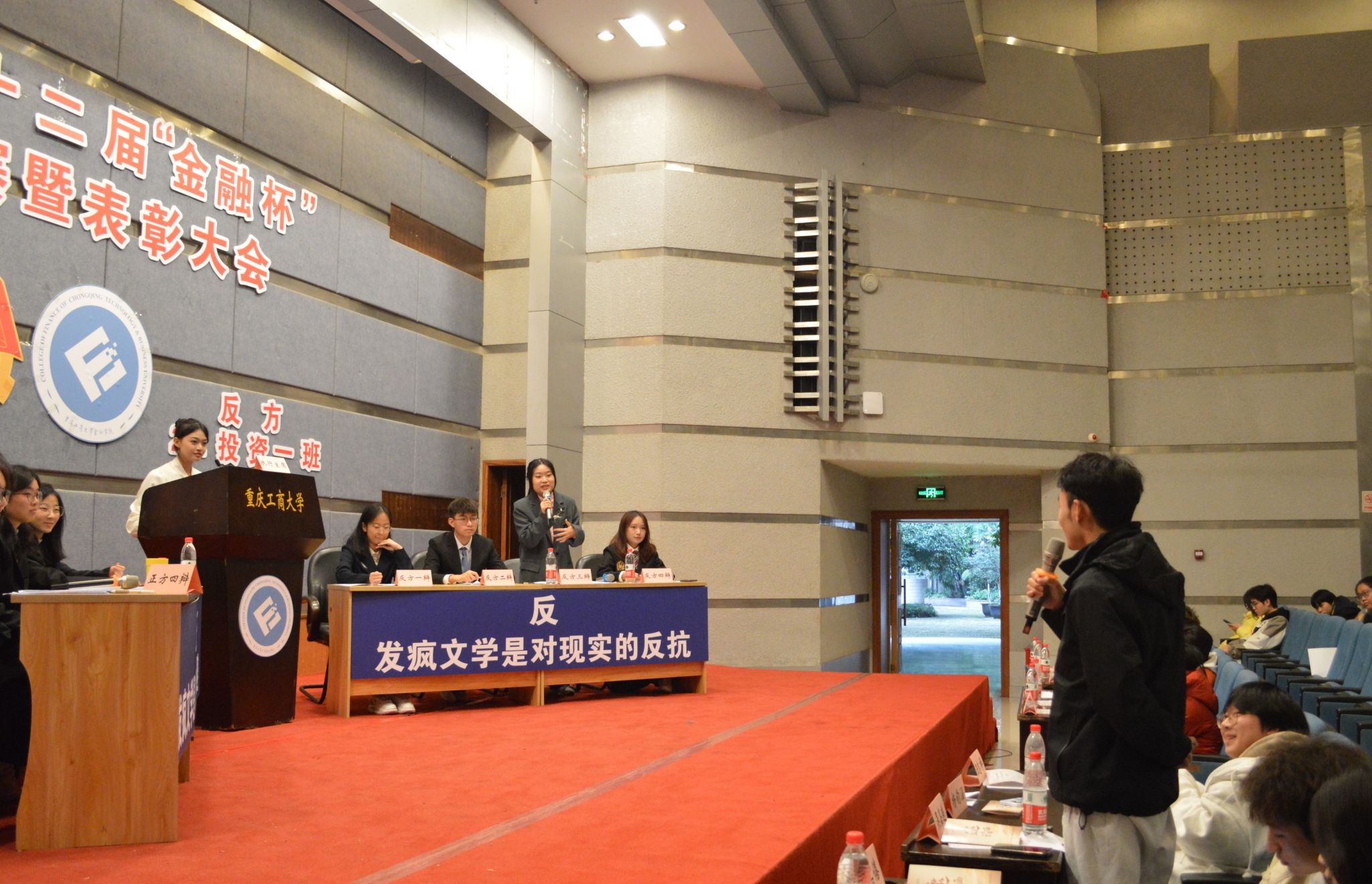 为了增强观众体验感,伟德国际19492023级辩论队为大家带来了以“发疯文学是对现实的逃避还是对现实的反抗”为辩题的辩论表演赛,同样精彩绝伦,引得观众拍手叫好!最后,大会对优秀辩手和获奖队伍给予表彰并颁发奖状。