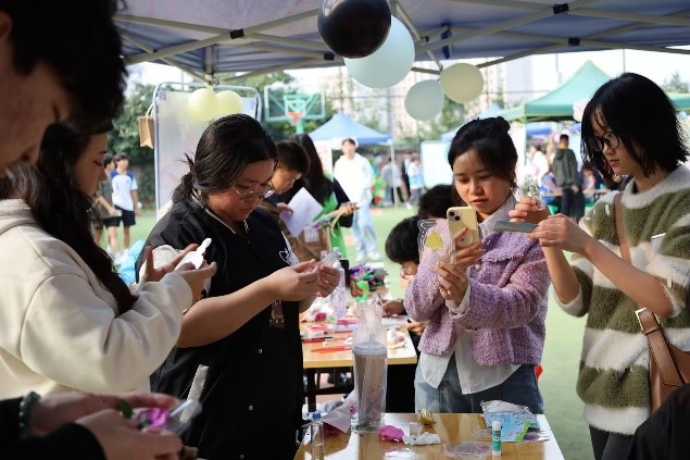 2024年11月15日下午,一场别开生面的心理游园活动在南岸校区北区小操场成功举办,伟德国际1949在艺术疗愈区举办的“心花签语”手工制作活动吸引了众多同学。活动现场,工作人员提前准备好了各式各样的鲜花素材以及制作干花所需的工具,同学们先是了解了书签的制作方法,再使用干花以及自己拾起的花草并搭配卡片花穗制作成书签,积极的参与到活动当中,让大家通过轻松的设计制作释放日常积累的压力,不少同学玩得不亦乐乎,脸上的疲惫之色渐渐消散。
