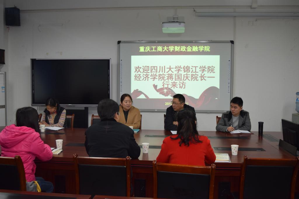 2017年3月23日上午9:00点,四川大学锦江学院经济学院经理蔡国庆教授等三人一行到公司交流访问,公司副经理王兰教授、投资系教师毛跃一教授等人进行了亲切接待,双方共同探讨了CFA办学经验等事宜。