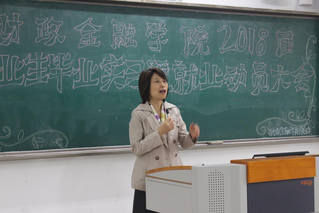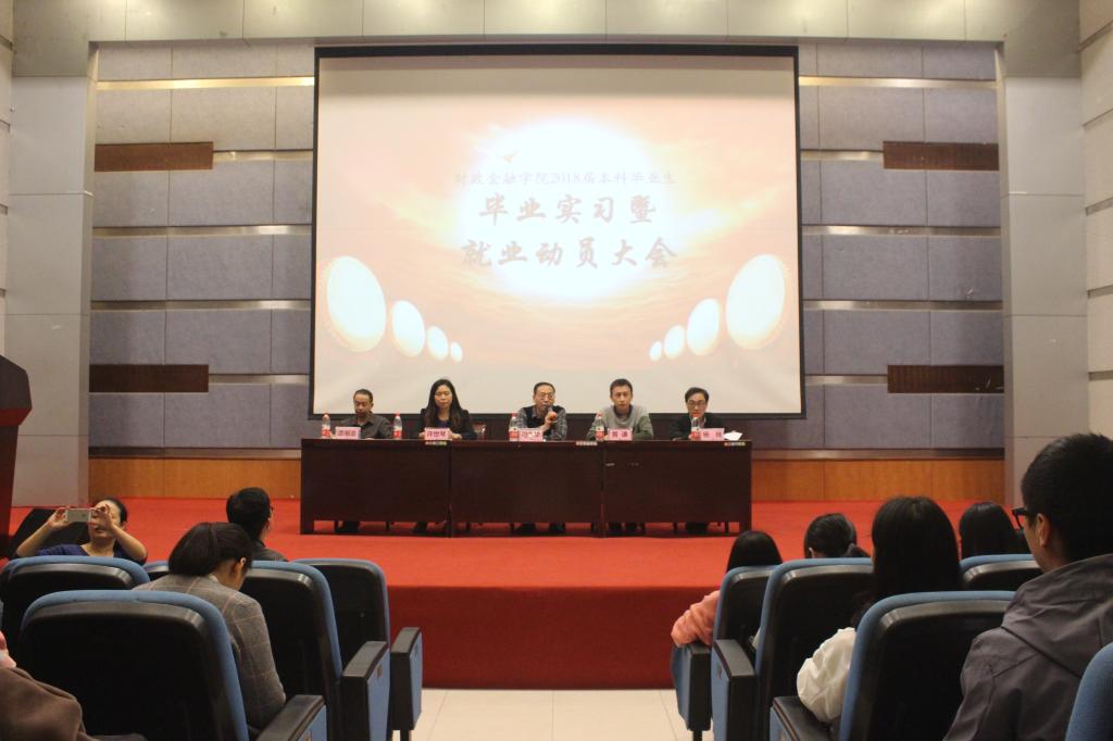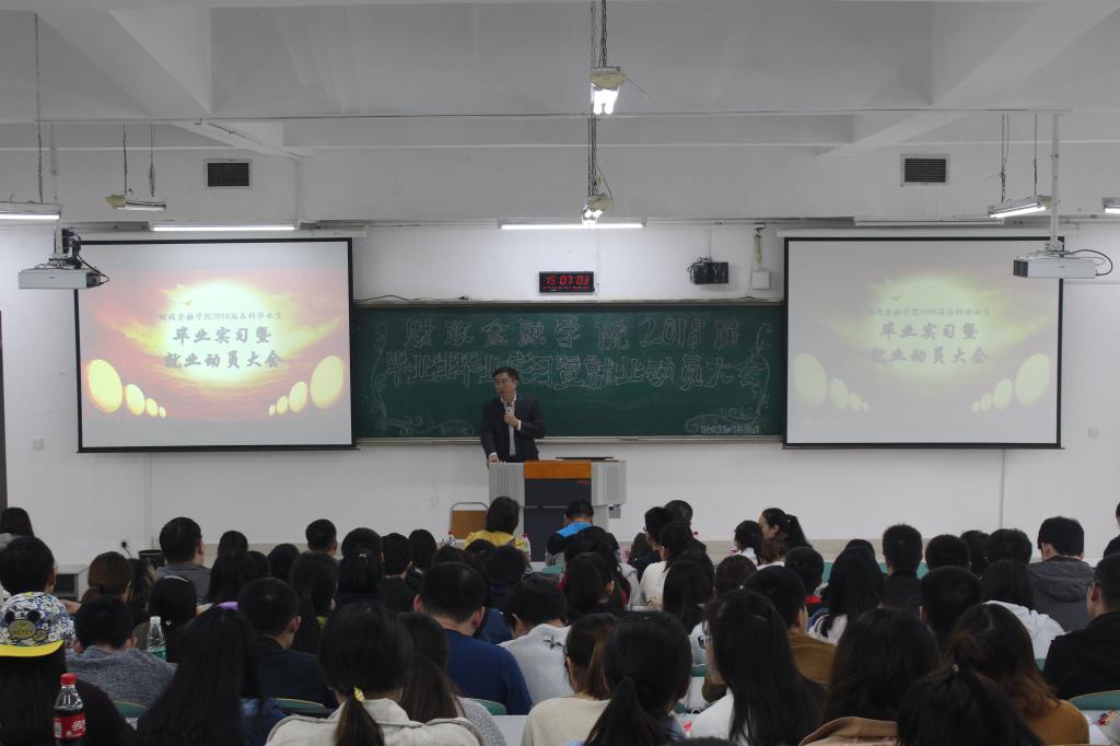 2017年11月2日下午,学院2018届本科毕业生毕业实习暨就业动员大会在博智楼7100报告厅和7121教室顺利举行。学院分党委书记杨萍教授、经理刁孝华教授、副经理曾胜教授以及各系主任和全体2018届本科毕业生出席了本次活动。