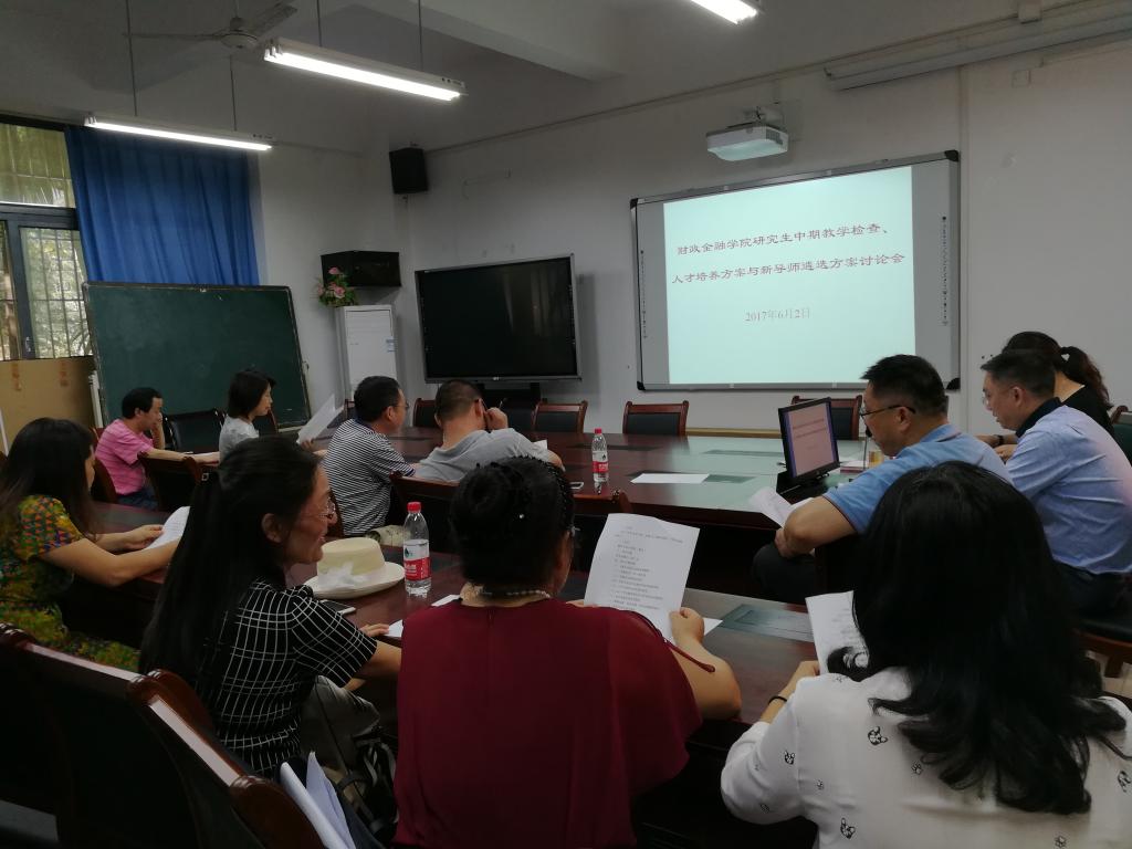 在导师遴选完成后,还对研究生中期教学检查、人才培养方案同导师们沟通交流,了解导师们的相关意见和建议,对金融专硕(MF)面临检查验收的相关工作和需要的资料以及成果一一进行了讨论。