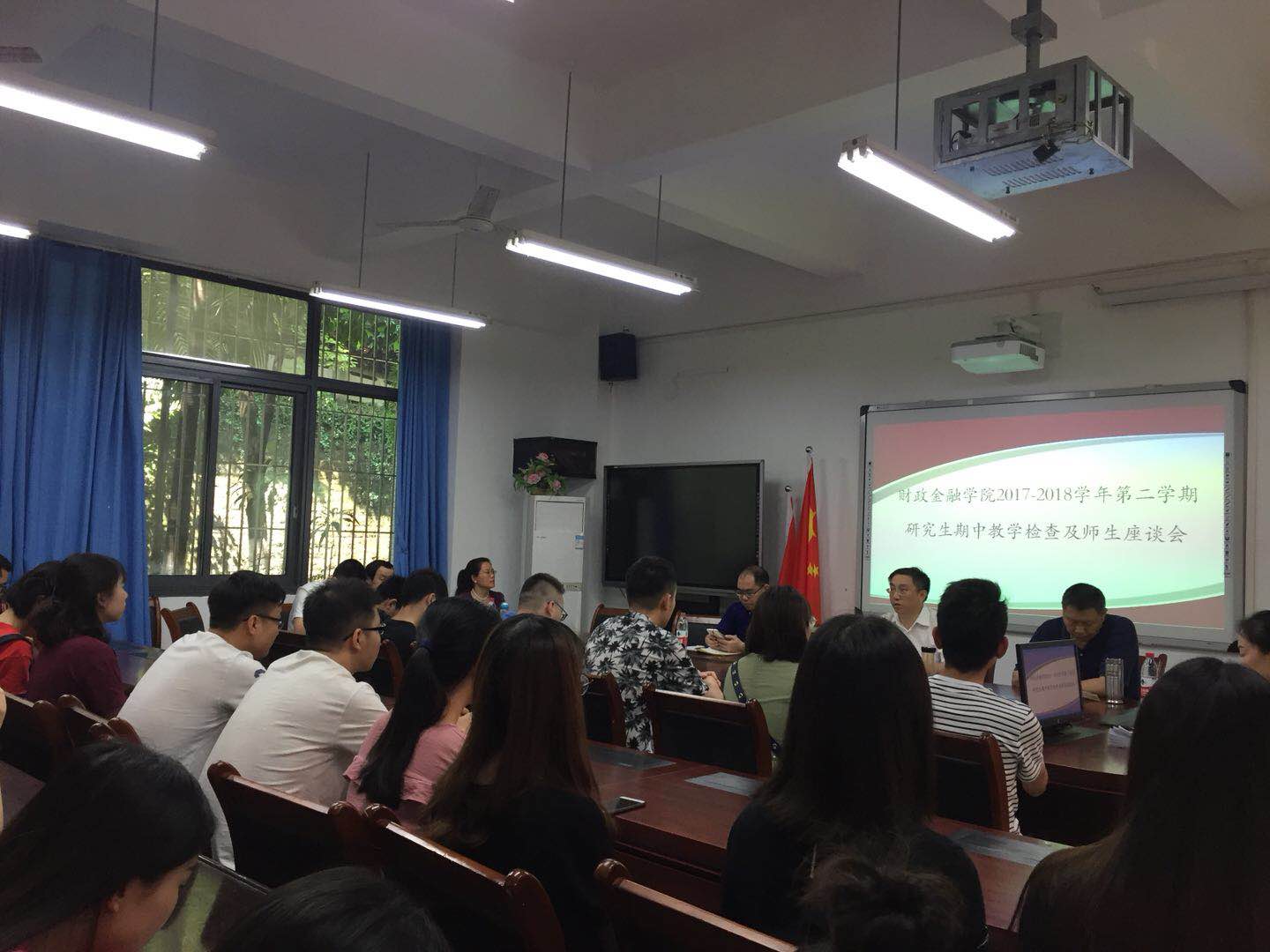 2018年6月5日下午14:30,在田家炳50313教室,公司组织了研究生期中教学检查及师生座谈会。学校研究生院经理田双全教授也莅临了本次会议,座谈会由学院曾胜副经理主持,部分师生代表一同参与了会议。