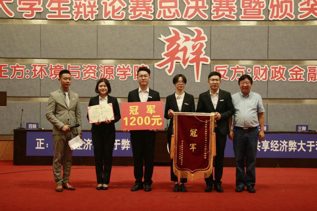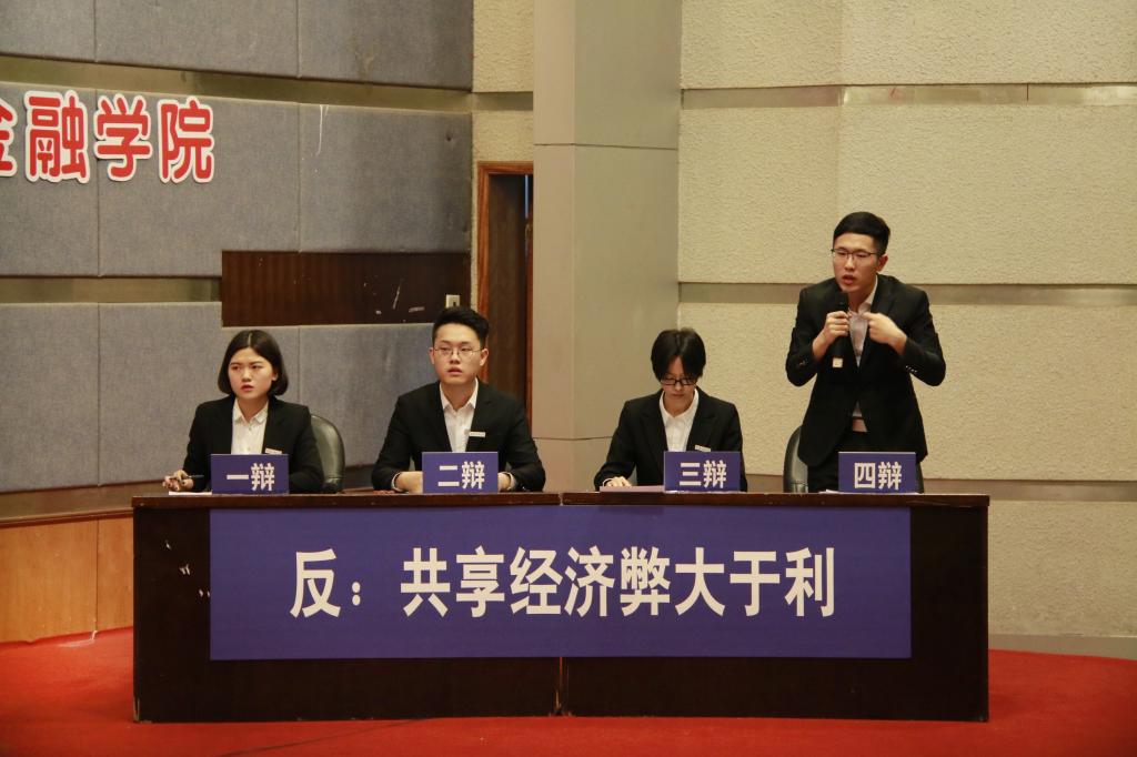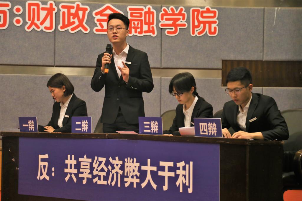 进入决赛的是财政伟德国际1949辩论队与环境与资源学院辩论队。双方就“共享经济利大于弊/弊大于利”展开辩论。比赛伊始,作为正方的环境与资源学院开宗明义,通过分析市场现状和共享经济发展趋势阐明了“共享经济利大于弊”的观点。我方辩手则提出了共享经济会提高社会成本,占用社会资源的观点,并从另外一个角度剖析共享经济的蓬勃发展容易导致恶性竞争从而破坏市场规则,影响经济的正常运行,进而论证了“共享经济弊大于利”的论点。在随后的自由辩论与总结陈词环节,双方辩手你来我往、旁征博引,以沉稳冷静、妙语连珠的表现获得了在场观众与评委的阵阵掌声。