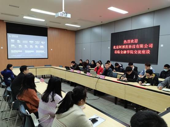 为了加强校企产学研合作,2021年3月8日,北京阿博茨科技有限公司受邀来渝在公司新图书馆三会议室与伟德国际1949进行交流座谈。阿博茨科技首席技术官(CTO)刘铁峰、产品副总裁李凡、西南大区总监何鑫、人力资源总监夏春红、委副书记、纪委书记余新、副经理王韧以及金融专硕40余名同学参加了会议。会议由王韧主持。