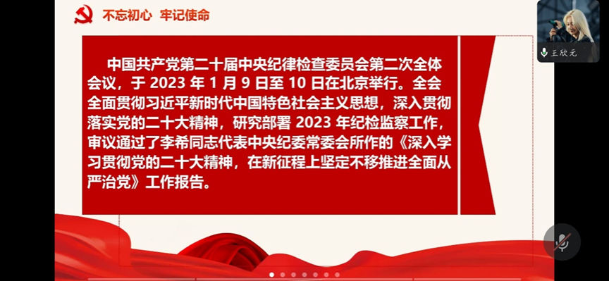 2023年2月23日星期四下午两点三十分,伟德国际1949员工第二党支部以企业微信线上会议的形式召开了二月的支部组织生活会。出席本次会议的成员有伟德国际1949员工第二支部书记乔明月老师及其他党员同志、预备党员同志。二支部应到42人,实到38人。
