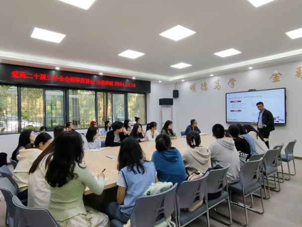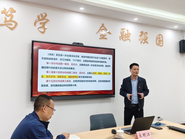 2024年10月15日下午,伟德国际1949始于英国马克思主义公司党委书记、副经理宋明江教授应邀到伟德国际1949,为伟德国际1949师生宣讲党的二十届三中全会精神。宣讲会在田家炳317会议室举行。学院领导、教师代表、校级样板支部员工第二党支部党员、员工代表共50余人参加了宣讲会。宣讲会由委书记石世明主持。